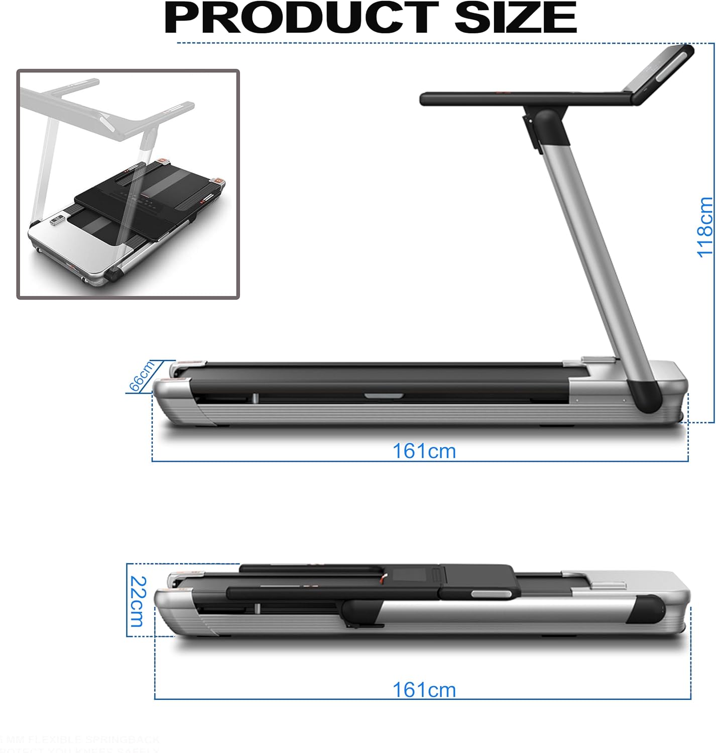 FOLDABLE DESIGN WITH EASY STORAGE WHEELS: Save space with a hydraulic folding system that lets you store the treadmill vertically or move it effortlessly using built-in transport wheels