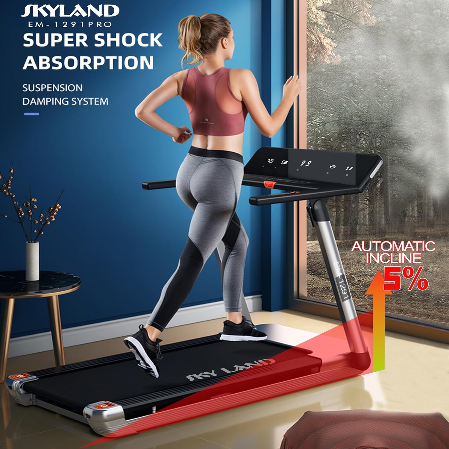 28-Level Auto Incline & Shock-Absorbing Belt