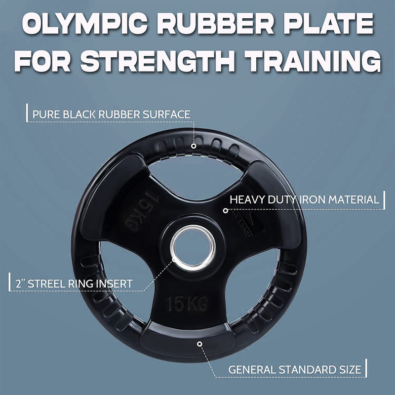 SKY LAND Olympic Weight Plate – 15kg Rubber Coated Cast Iron (EM-9264-15)