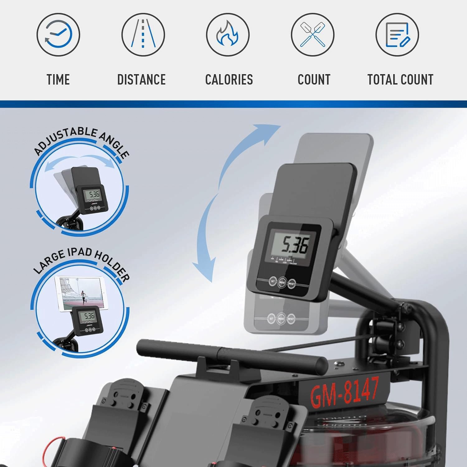 Water Rowing Machine for Home Use ?C Indoor Cardio Rower with 14L Tank, Bluetooth App, LCD Monitor, Foldable Storage & 136KG Capacity Fitness Equipment GM-8147