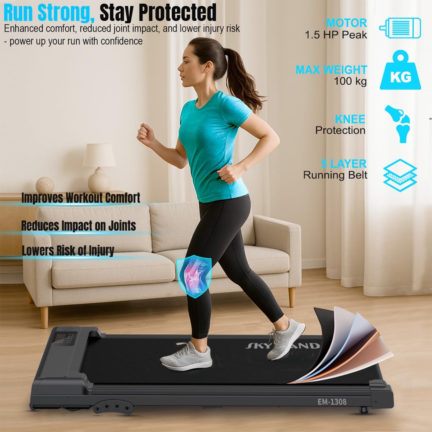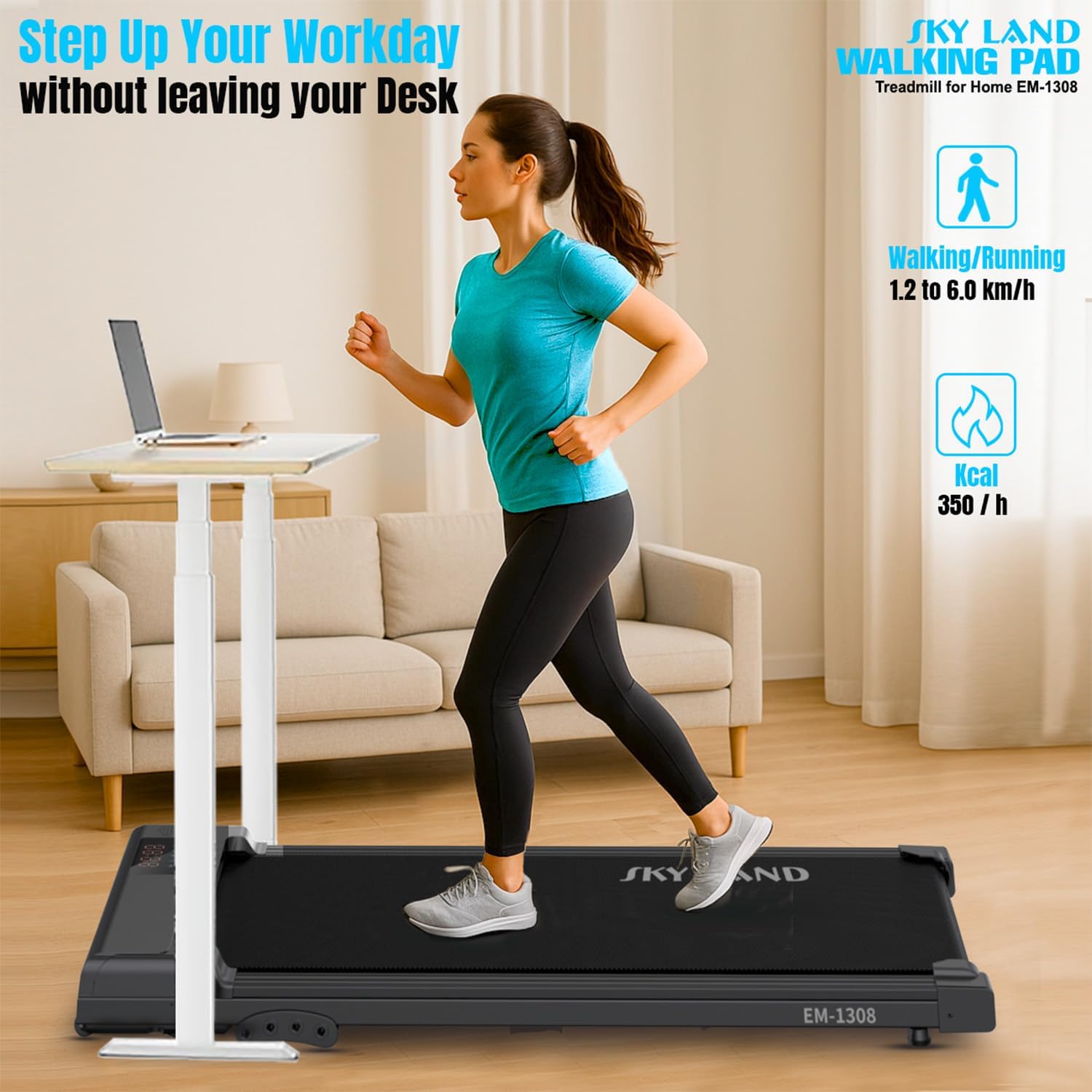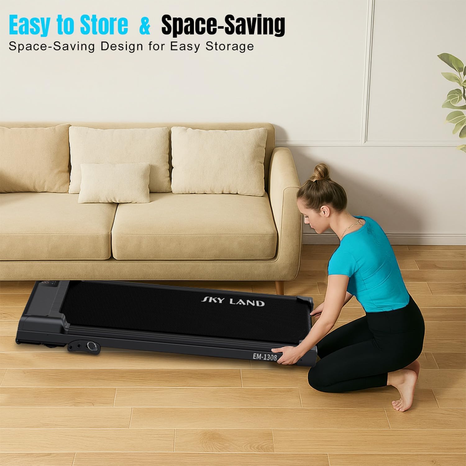 COMPACT & SLIM UNDER-DESK DESIGN ?C Ultra-slim treadmill fits under desks, sofas, or beds, making it perfect for home, office, or apartments. Save space without compromising daily activity.